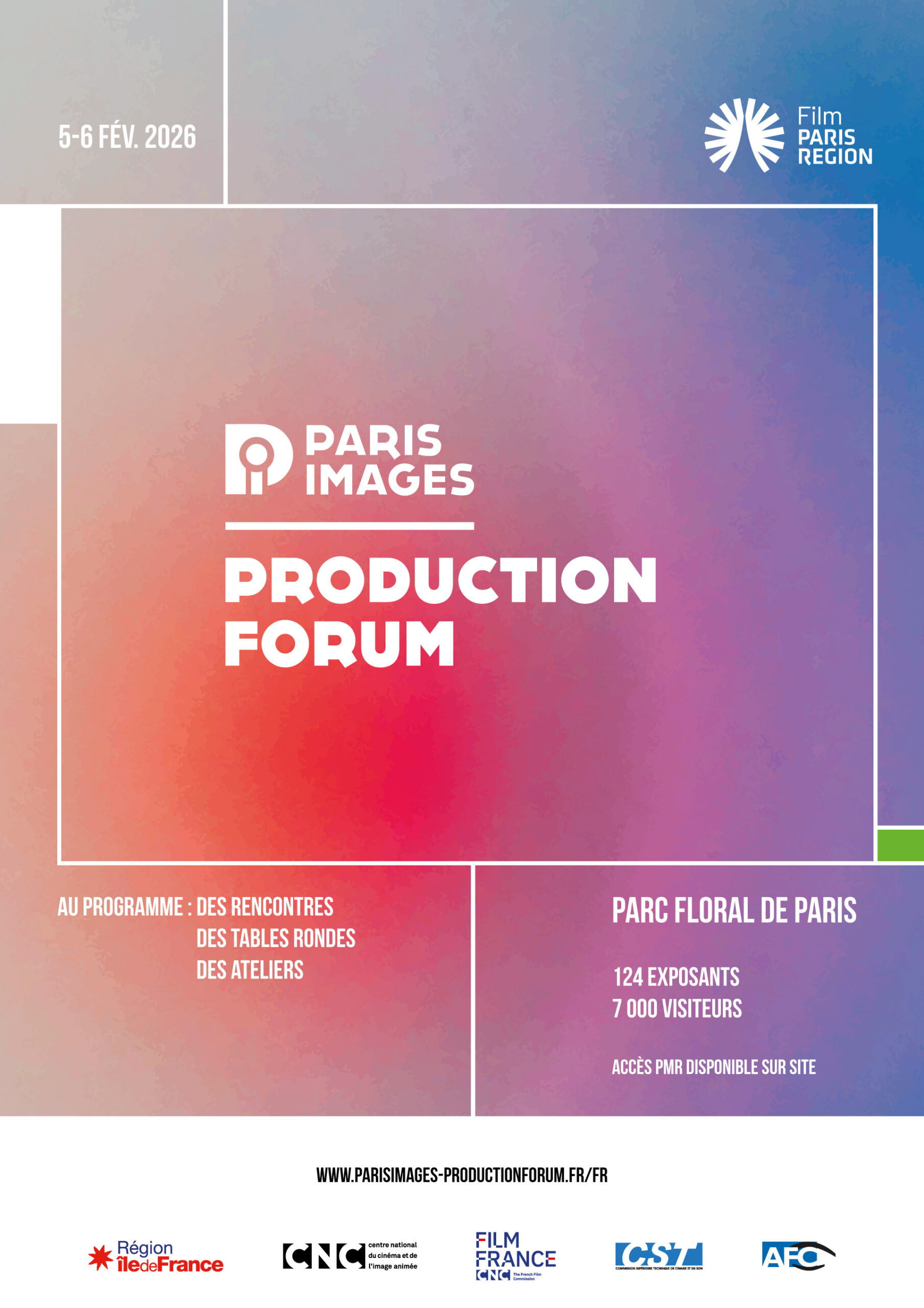 Lieu de rencontre privilégié pour tous les acteurs de la production cinéma et audiovisuelle, la synergie du Paris Images Production Forum avec les grandes organisations du secteur (CNC, AFC, CST, FICAM…) en fait un rendez-vous annuel incontournable pour développer de nouveaux projets.
